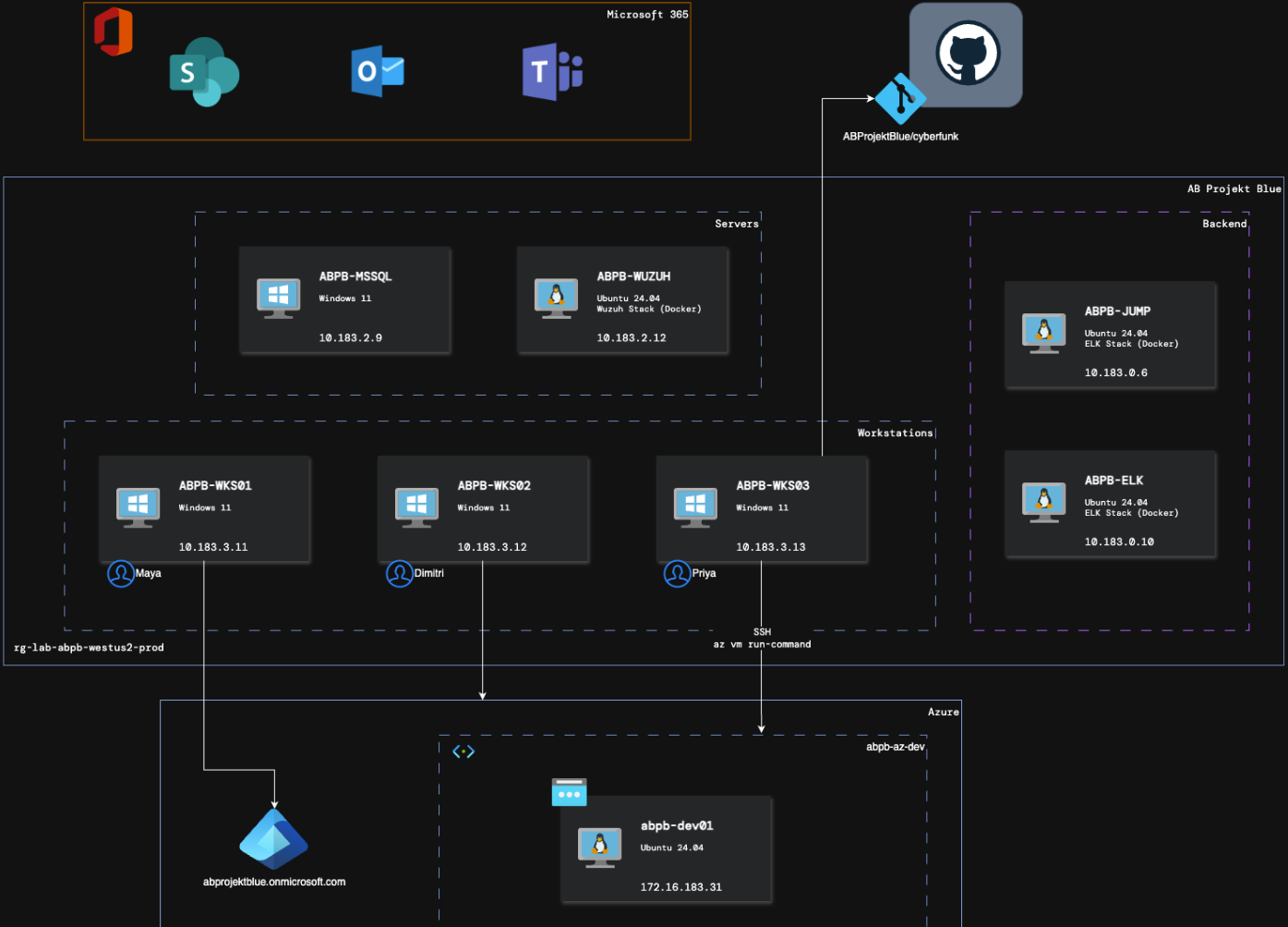 - All logs are sent to an Elastic stack - Windows Event Logs, Azure Logs, M365 Logs